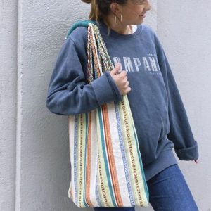 - Materiales: Loneta y asas simil piel
